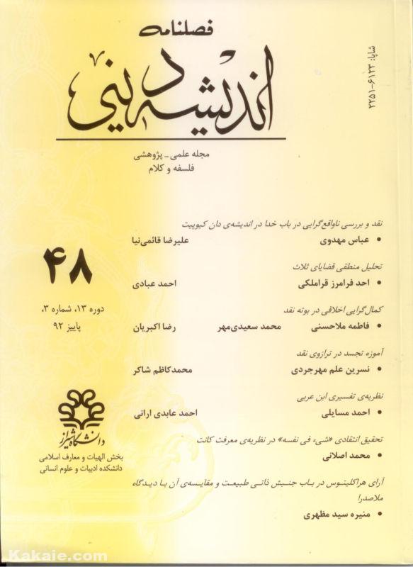 فصلنامه اندیشه دینی شماره 48 منتشر شد. این فصلنامه در زمینه فلسفه و کلام، یه سر دبیری دکتر قاسم کاکایی، از سوی دانشگاه شیراز منتشر می شود و دارای درجه علمی-پژوهشی از سوی وزارت علوم است. مقالات این شماره و اطلاعات مربوط به این مجله به شرح زیر است: